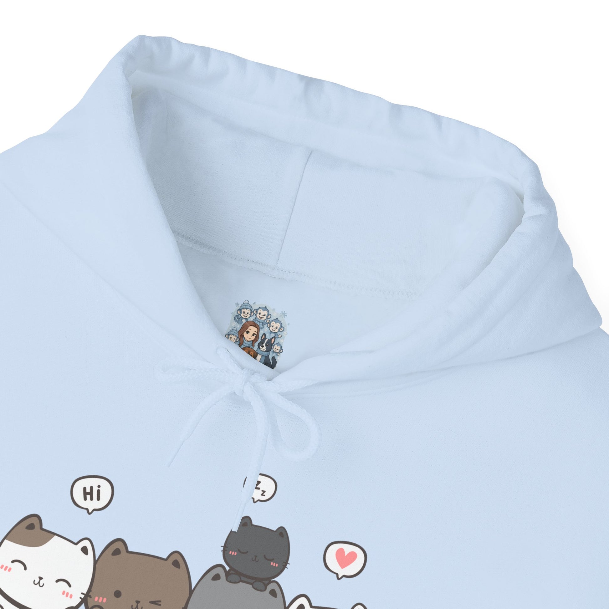 Met vier schattige kattenvriendjes op de voorkant brengt deze hoodie instant cozy vibes en een glimlach op je gezicht. Perfect voor knuffelmomenten met je kat, chillavonden op de bank of een dagje creatief bezig zijn.