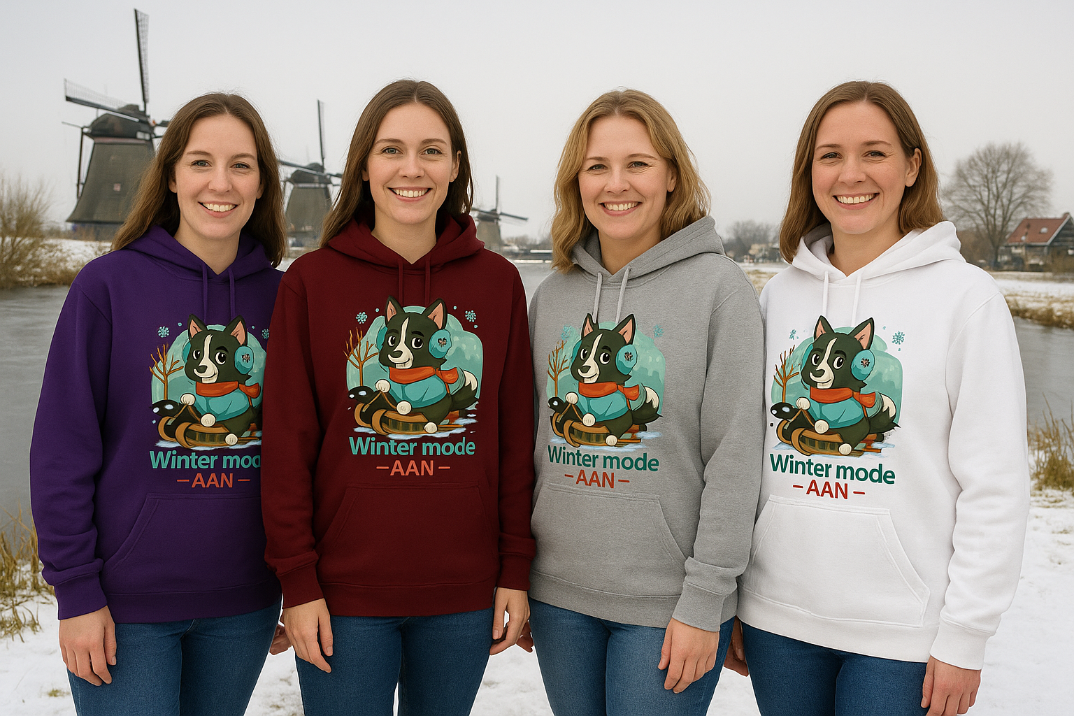 Laat de kou maar komen, want met deze Nikita Winter hoodie blijf je warm in stijl! Onze stoere hond Nikita uit de Creatieve Aap Collectie is helemaal klaar voor het seizoen — ingepakt met sjaal, sleetje en een flinke dosis gezelligheid. Perfect voor winterwandelingen, koude werkdagen of gewoon lekker cocoonen thuis met een kop thee ☕