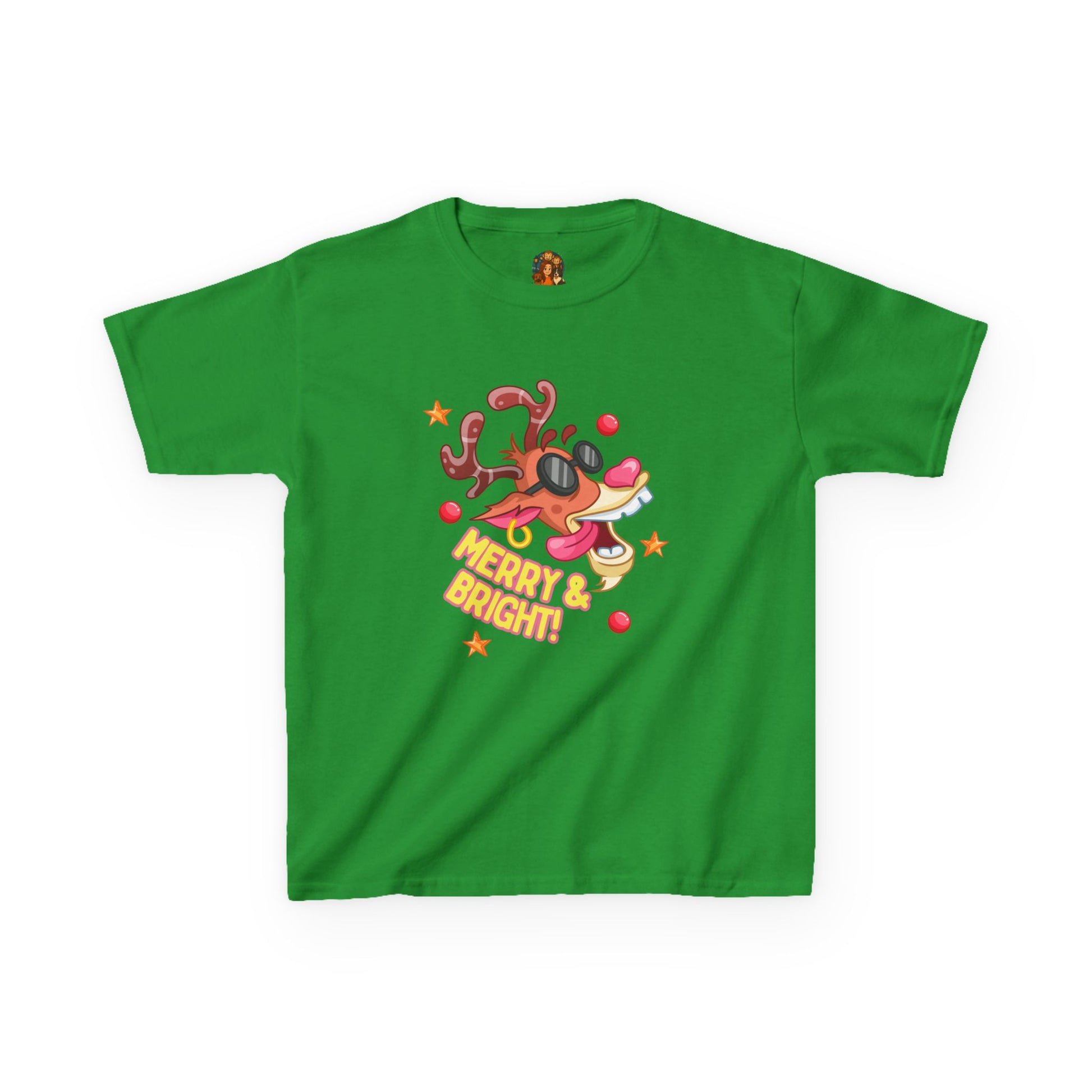 Dit superleuke Merry & Bright rendier-shirt is een hit bij kinderen die dol zijn op kleur, fun en kerstpret! Het cartoonrendier met zonnebril en feestelijke kerstballen maakt dit shirt een echte blikvanger tijdens schoolactiviteiten, kerstdiners en familiefoto’s.