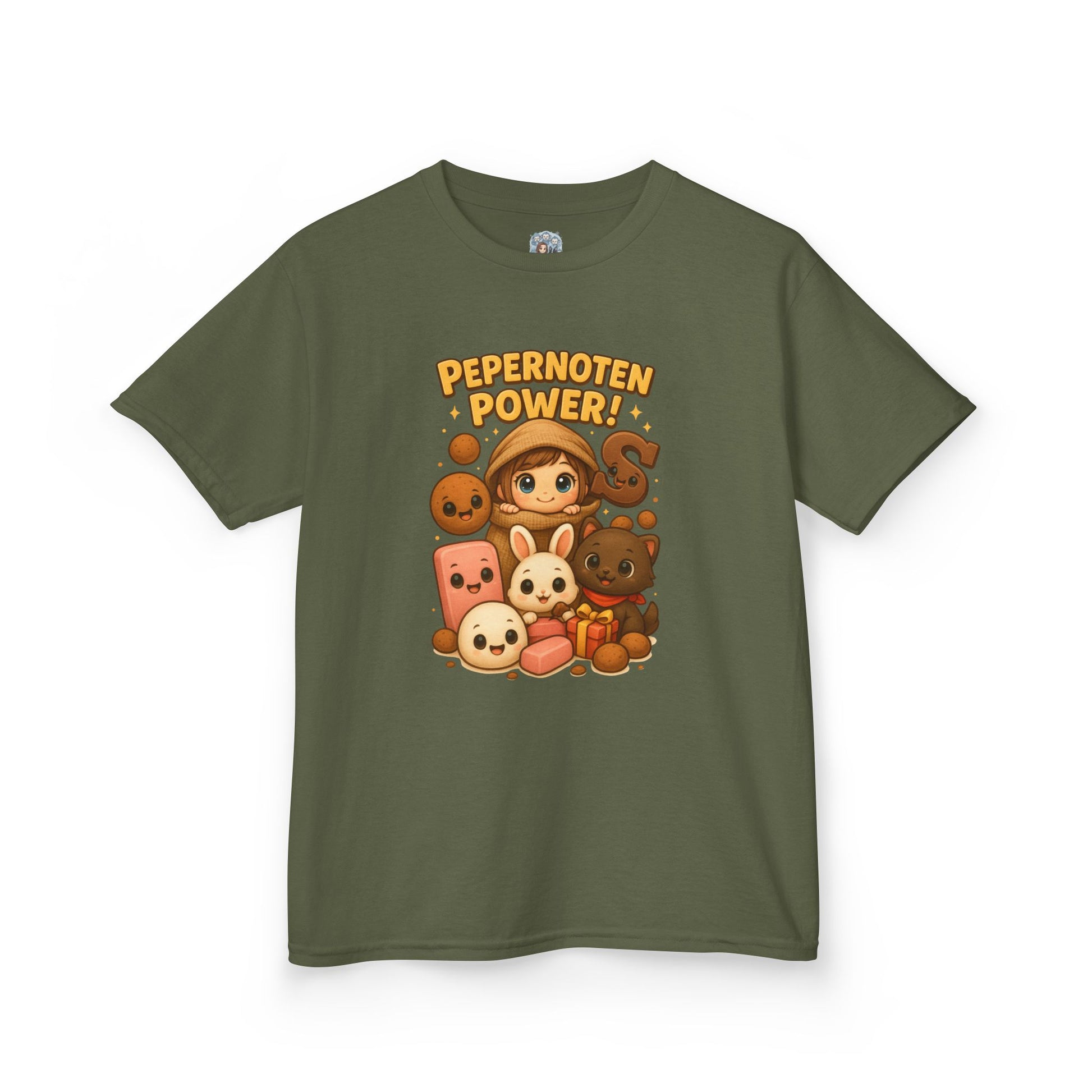 Pepernoten, marsepein en vrolijke Sint-vibes — dit Pepernoten Power! kinder T-shirt is dé outfit voor kleine zoetekauwen die gek zijn op het Sinterklaasfeest! 🎅