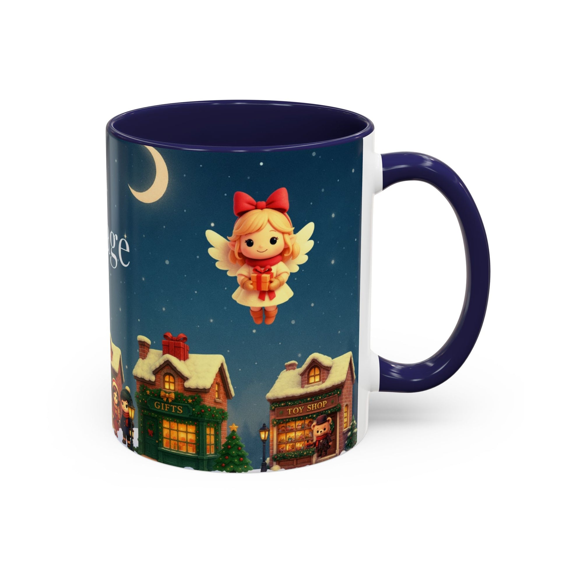 De binnenkant en het handvat hebben een diepe, nachtblauwe kleur die prachtig aansluit bij de winterlucht in het design. Gemaakt van hoogwaardig keramiek met een glanzende finish, perfect voor warme chocolademelk, thee of koffie tijdens koude avonden.